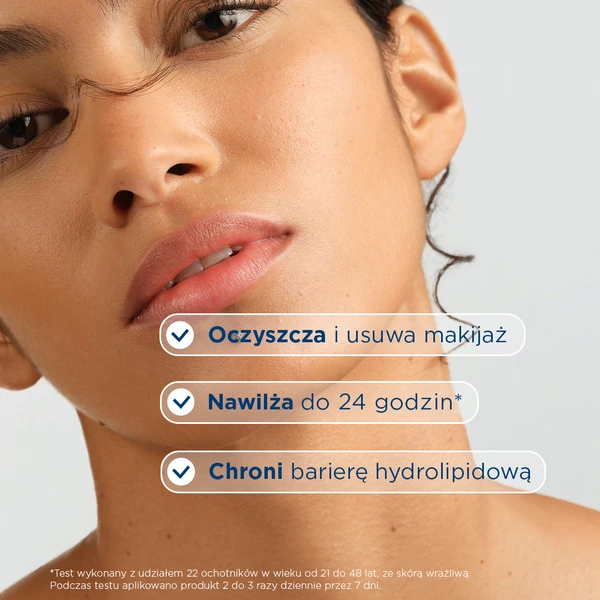 - Technologia micelarna - delikatnie oczyszcza, usuwa makijaż i zanieczyszczenia.