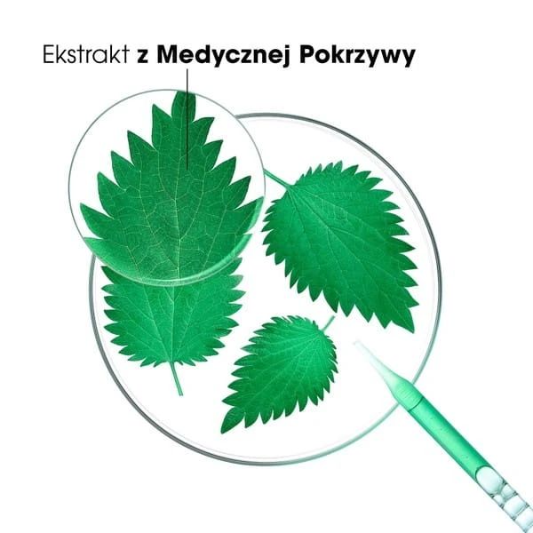 Ekstrakt z organicznej pokrzywy (certyfikat Ecocert) zawiera seboregulujące flawonoidy i garbniki, które zmniejszają aktywność gruczołów łojowych skóry głowy. Co to znaczy dla Ciebie: włosy przetłuszczają się wolniej, czas między myciem wydłuża się, a skóra głowy jest bardziej zrównoważona.