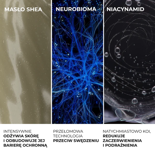 Tribioma (prebiotyczny kompleks z 3 składników) przywraca równowagę mikrobiomu skóry atopowej, który jest chronicznie zaburzony przy AZS. Co to znaczy dla Ciebie: leczysz nie tylko objawy suchości, ale przyczynę mikrobiomową nadwrażliwości, co prowadzi do trwalszego komfortu i rzadszych zaostrzeń.