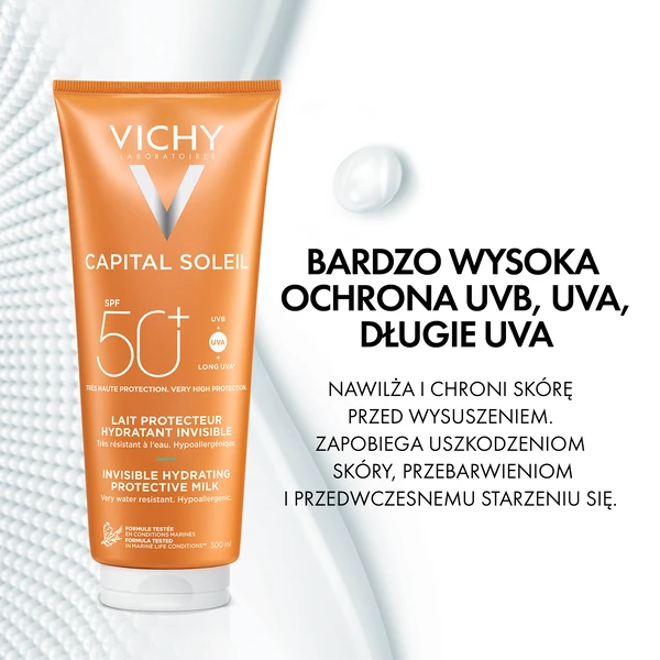 Vichy Vichy Capital Soleil, nawilżające mleczko, SPF50+ — Vichy Capital Soleil Nawilżające Mleczko SPF50+ to nowoczesna emulsja